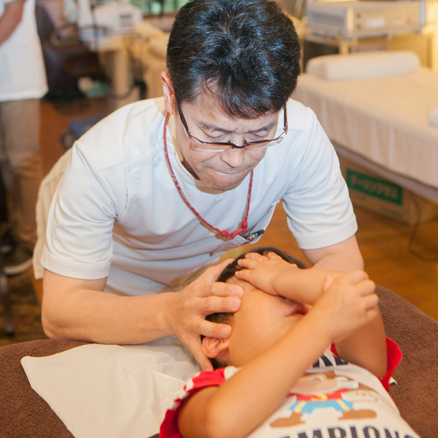 小児や赤ちゃんの場合は頭蓋骨から、成人の場合は骨盤から全身を整え、一番の問題を引き出します。