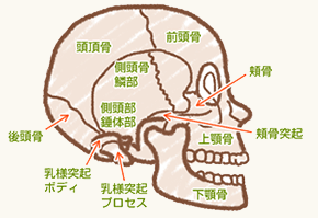 アトピーの方には、「頭蓋骨全体が硬い」「前頭骨(おでこの骨)が平ら」といった特徴が多く見受けられます。