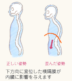 横隔膜が通常の位置より下がると、内臓全体を圧迫し、内臓本来が持っている機能を発揮できなくなります。
